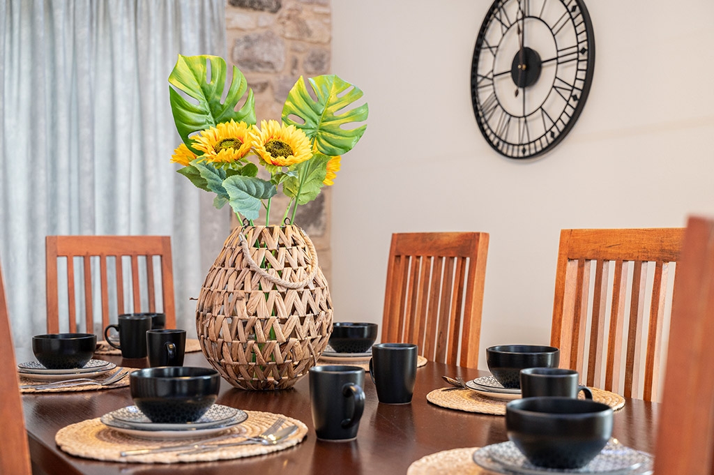 - Full dinnerware service for 8+ guests (plates, glasses, cutlery)